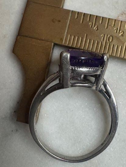 Sterling .925Amethyst Trillion Cut 2.93 gramsSize 7 Vintage, Pre-ownedCondition Good with minor surface wearBox shown not included, Beautifully packaged with 100% recycled material