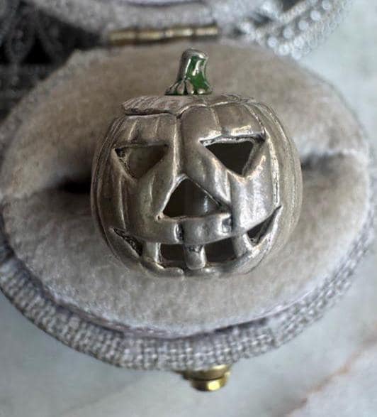 Sterling .925 Rare Movable Pumpkin Charm with candle inside3.53 gramsVintage PreownedCondition good with minor surface wearBox shown not included, Nicely packaged