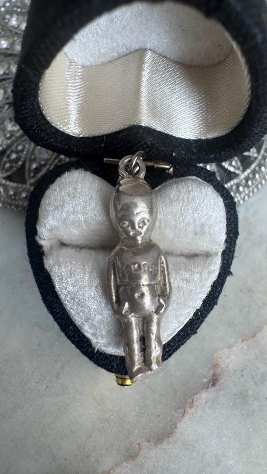 Sterling .925 MexicanAntique Alien Charm3.10 gramsVintage Pre-ownedCondition excellent with minor surface wearBox shown not included, Nicely packaged with 100% recycled material