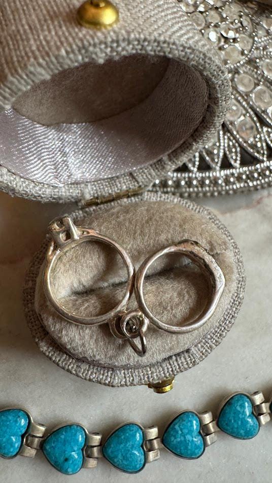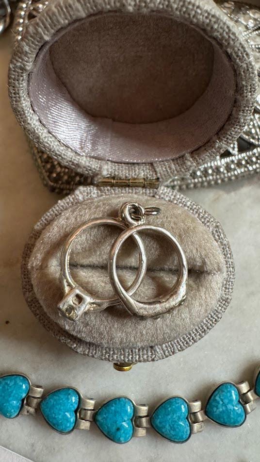 Sterling .925Moveable Wedding Rings Charm1.52 gramsVintage PreownedBox shown not included, Beautifully packaged