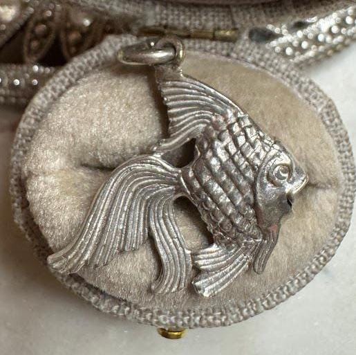 Sterling .925Fish Charm3.11 gramsVintage Pre-ownedCondition good with minor surface wearBox shown not included, Nicely packaged with 100% recycled material