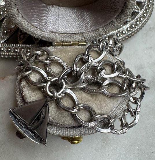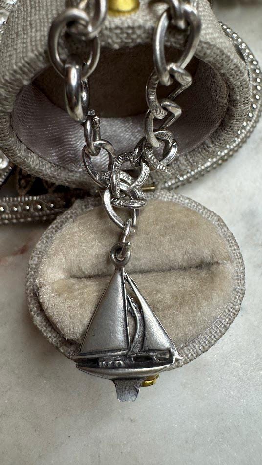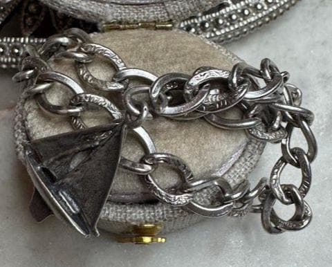 Sterling .925 Oval Link Two Finish Charm Bracelet7.5in lengthSpring Ring Clasp7.04 gramsVintage, Pre-owned Condition good with minor surface wearBox shown not included, Nicely Packaged
