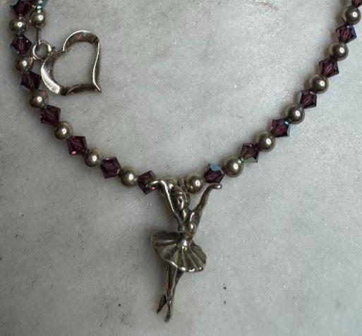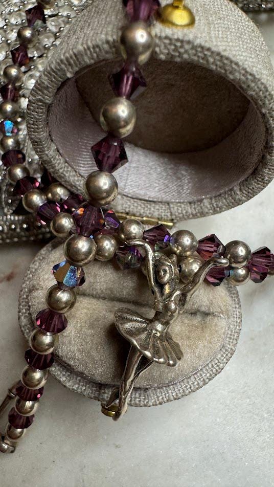 Sterling .925Vintage Ballerina Charm on Lilac Crystal & Silver Pendant with Heart Clasp11.83 gramsPre-owned Condition Excellent with minor surface wearBox shown not included, Nicely packaged with 100% recycled material