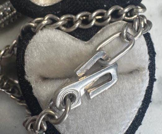Sterling .925Charm Link Bracelet7in length7.32 gramsVintage, antique, preownedCondition good with minor surface wearBeautifully packaged with 100% recycled material