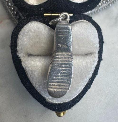 Sterling .925 Rhodium platedSneaker Charm1.65 gramsVintage Pre-ownedCondition excellent with minor surface wearBox shown not included, Nicely packaged with 100% recycled material