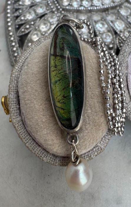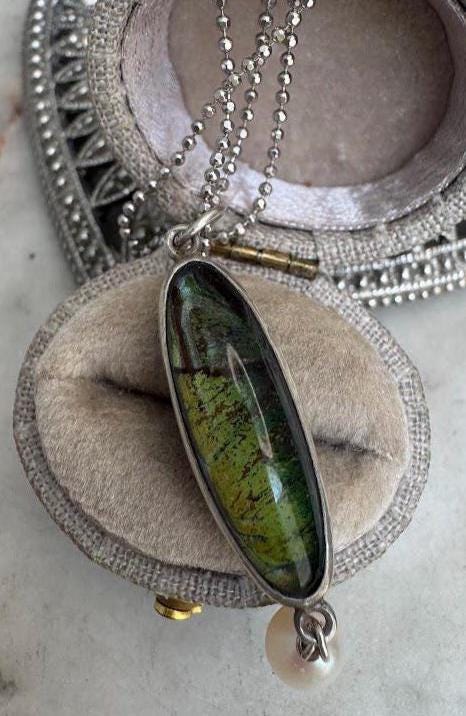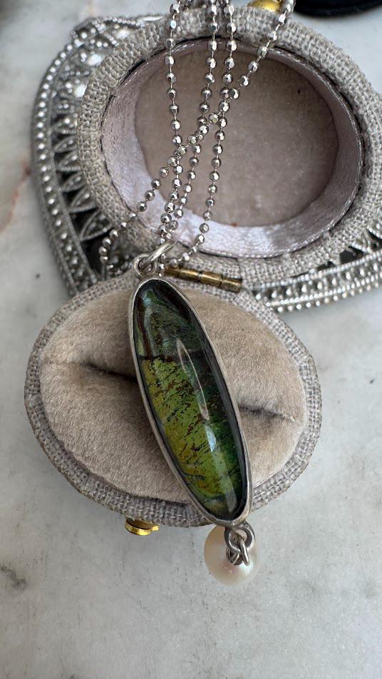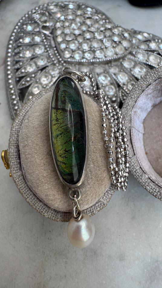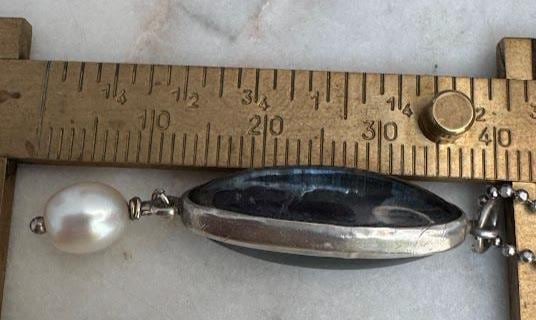 Sterling .925 Labradorite Center Stone & Pearl AccentBeaded link chain 18inSpring ring clasp4.9 gramsVintage, Pre-owned Condition good with minor surface wearBox shown not included, Nicely packaged with 100% recycled material