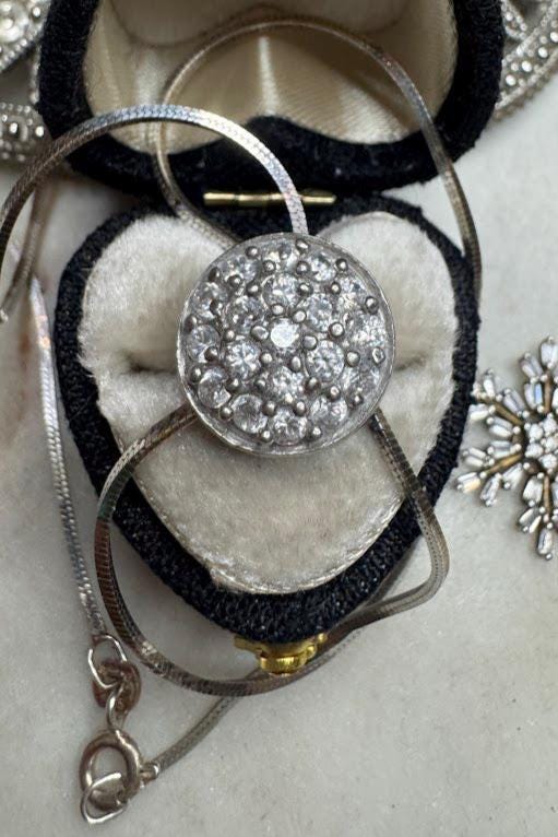 Sterling .925CZ Slide PendantSnake chain 18inSpring ring clasp5.82 gramsCondition excellent with minor surface wearBox shown not included, Nicely packaged with 100% recycled material
