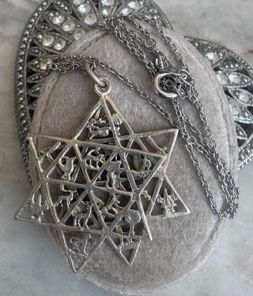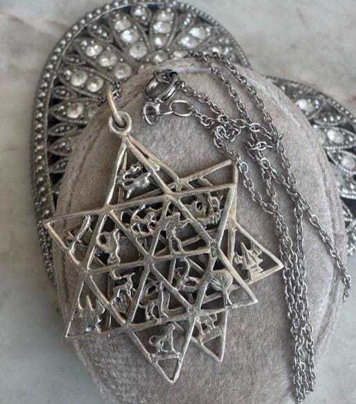 Sterling .925Two Stars with Nature & Animal DesignsCable Chain 16in lengthSpring ring clasp6.67 gramsVintage Pre-owned Condition excellent with minor surface wearBox shown not included, Nicely packaged with 100% recycled material