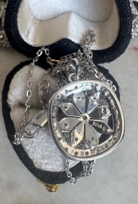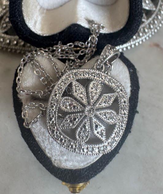 Sterling .925Cubic Zirconia Floral DesignLobster claw clasp3.61 gramsVintage Pre-owned Condition excellent with minor surface wearBox shown not included, Nicely packaged with 100% recycled material