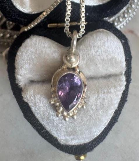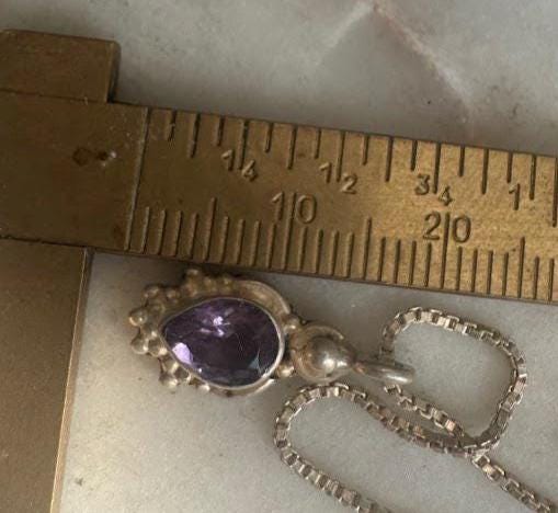 Sterling .925Amethyst Center Stone Cable Link chain 16inSpring ring clasp3.65 gramsVintage Pre-owned Condition Good with minor surface wearBox shown not included, Nicely packaged with 100% recycled material