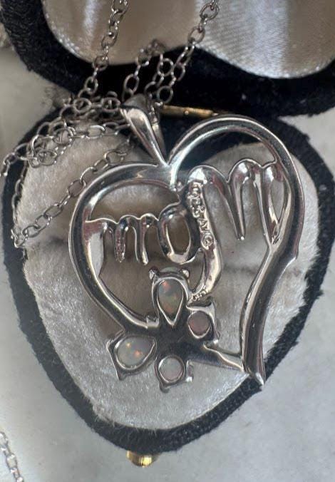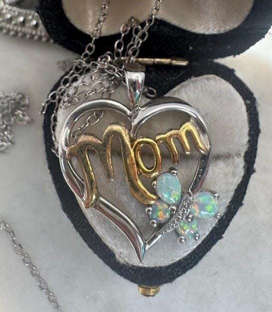 Heart Design Opal Stones "Mom"