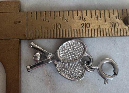 Sterling .925Two Tennis Rackets Charm1.65gramsVintage PreownedCondition good with minor surface wear Box shown not included, Nicely packaged with 100% recycled material