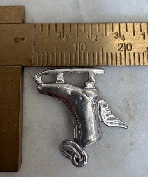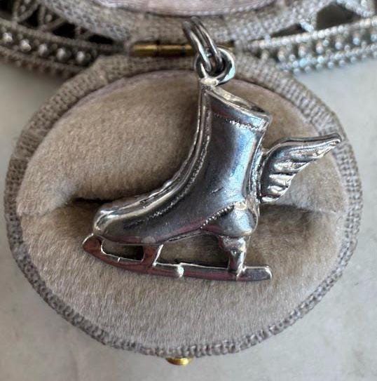 Sterling .925Ice Skate Winged Charm1.78 gramVintage PreownedCondition good with minor surface wearBox shown not included, Nicely packaged with 100% recycled material