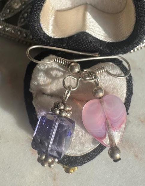 Sterling .925 Crystal Heart & Purple Cube Dangle EarringsEar wire earring1.25 gramsHand made Pre-owned Condition Excellent with minor surface scratchesBox shown not included, Beautifully packaged