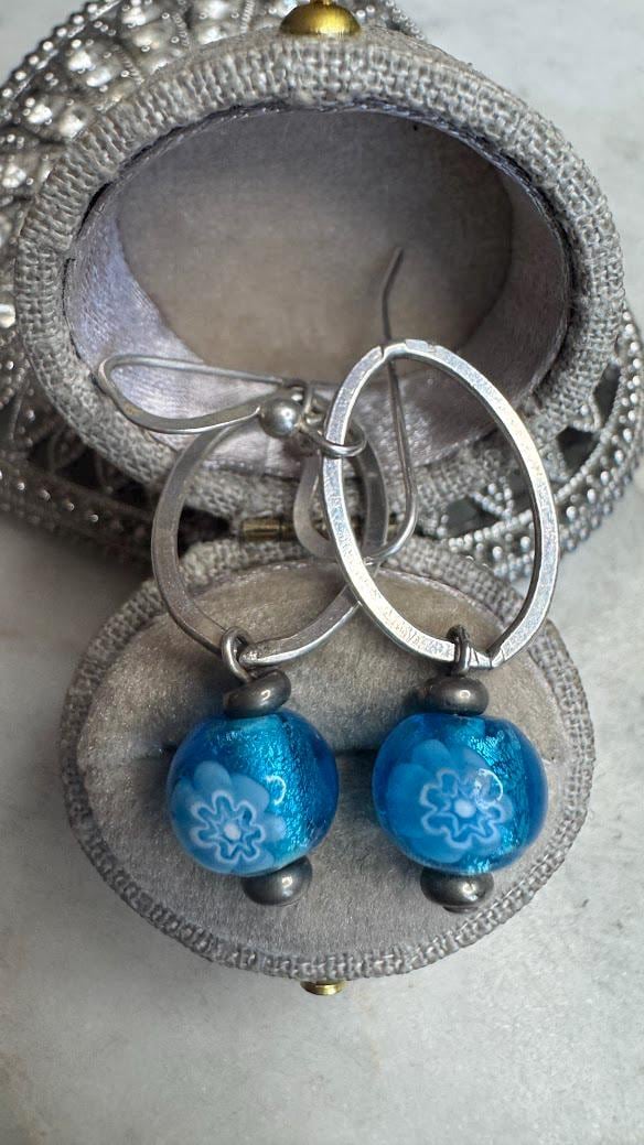 Sterling .925 Blue Floral Bead StonesFish Hook Earring3.5 gramsVintage, Pre-owned Condition good with minor surface wearBox shown not included, Nicely packaged with 100% recycled material