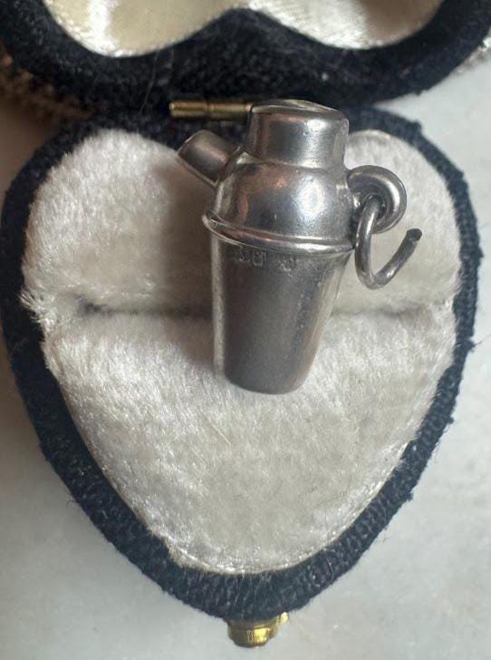 Sterling .925Cocktail Shaker Charm2 gramsVintage, pre-ownedCondition good with minor surface wearBox shown not included, Beautifully packaged with 100% recycled material