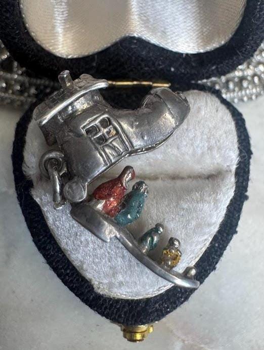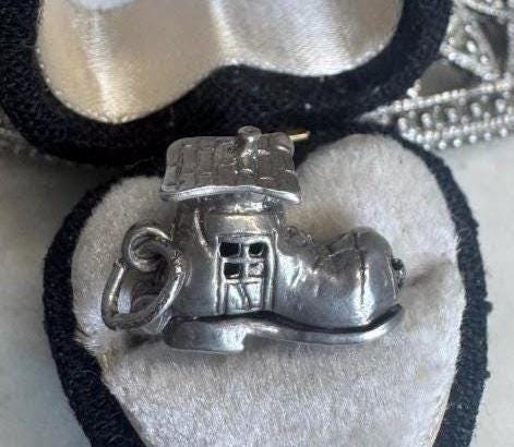 Sterling .925Movable Old Woman in the Shoe Charm 3.00 gramsVintage, pre-ownedCondition good with minor surface wearBox shown not included, Beautifully packaged with 100% recycled material