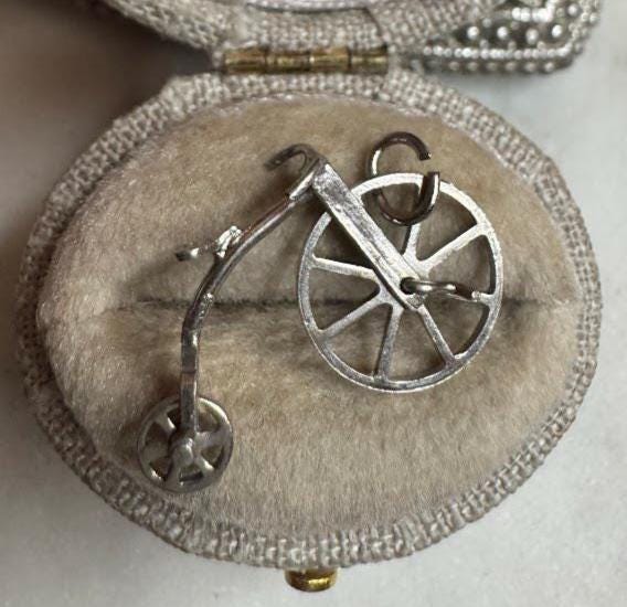 Sterling .925Bicycle Charm1 gramVintage Pre-owned Condition good with minor surface wearBox shown not included, Nicely packaged with 100% recycled material