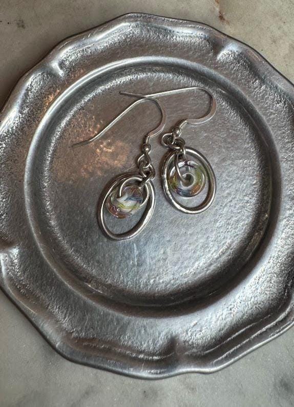 Sterling .925 Glass Colored StonesFish Hook Pierced4 gramsCondition Good with Minor Surface WearBox shown not included, Nicely packaged with 100% recycled material