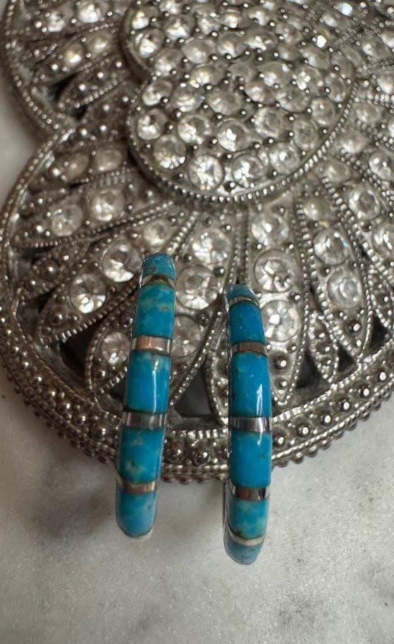 Sterling .925 Inlaid TurquoisePost Pierced Earring4.00 gramsVintage, Pre-owned Condition good with minor surface wearBox shown not included, Nicely packaged with 100% recycled material