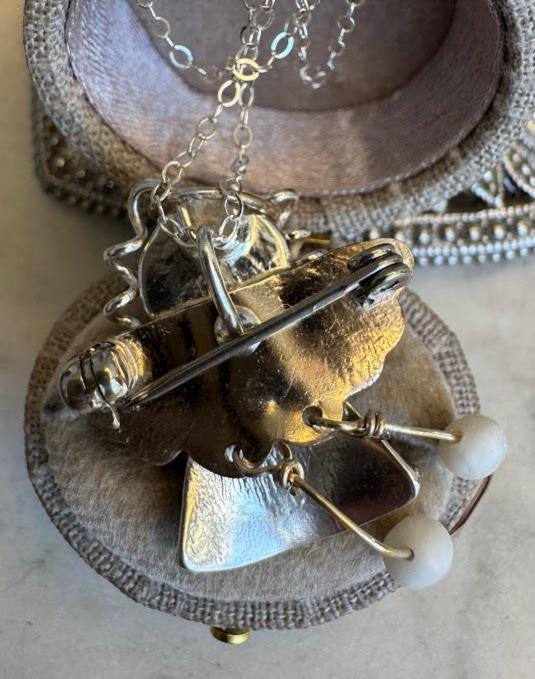 Sterling .925 Angel Brooch/ Pendant5.15 grams Vintage Pre-ownedCondition excellent with minor surface wearBox shown not included, Beautifully packaged with 100% recycled material