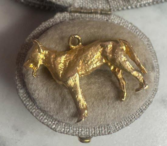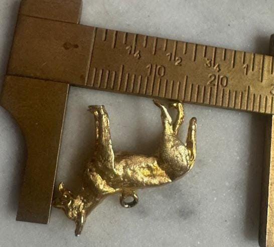 14 kt goldRare Wagging Tongue Dog CharmAmazing Detail7 gramsVintage, pre-ownedCondition excellent with minor surface wearBox shown not included, Beautifully packaged with 100% recycled material