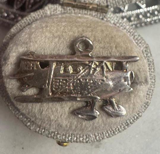 Sterling .925Wright Brothers Plane2 gramsVintage, pre-ownedCondition good with minor surface wearBox shown not included, Beautifully packaged with 100% recycled material